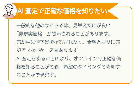 市場動向や周辺の取引事例、現在の売出事例等の大量のデータから査定しています。